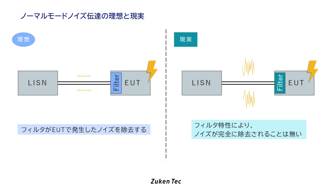いずれにしても、ここではEUT内で発生したノイズの伝達は、フィルタ特性に大いに影響されるということを理解しておくことが重要です。